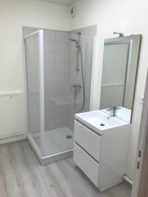 bel F1 de 50.96 m2 comprenant cuisine aménagée ouverte su grand séjour/salon, salle de douche équipée avec wc, remise privative dans cour commune.