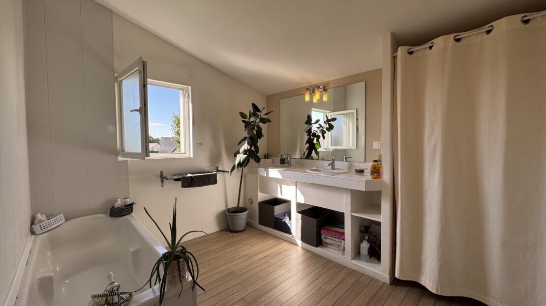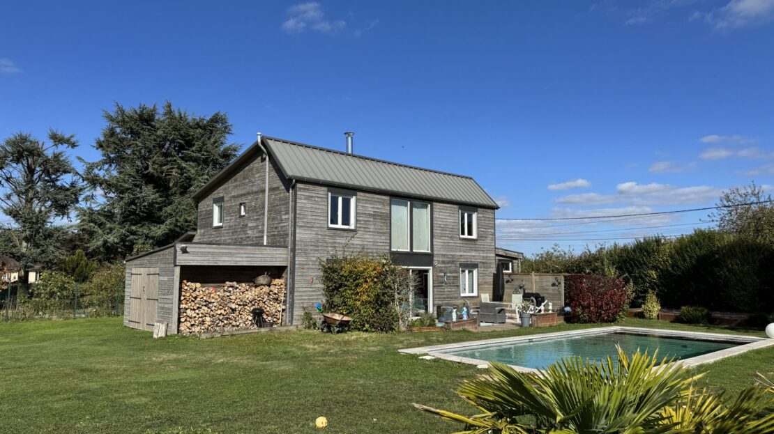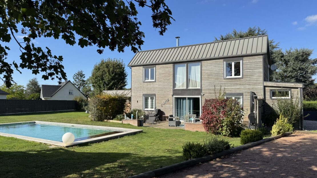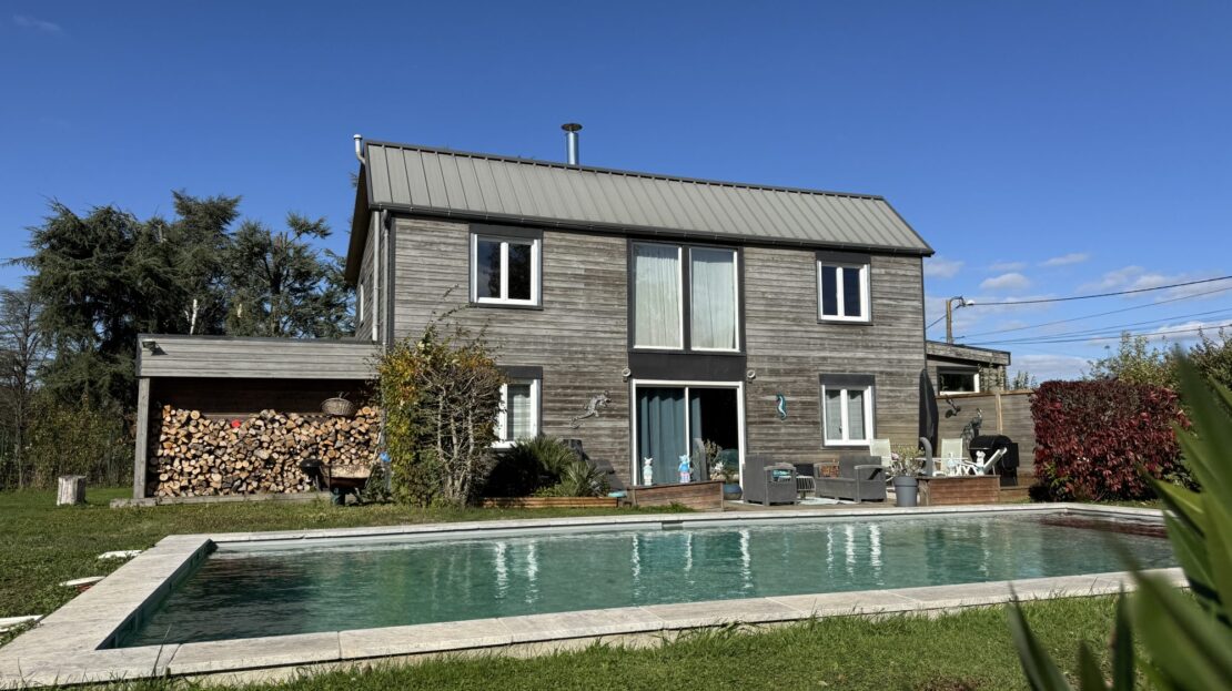Construite en 2009, cette maison de 165m² offre toutes les prestations utiles à votre vie de famille. Grande pièce à vivre, chauffage au sol, suite parentale en rez-de-chaussée, grand pallier pour salle de jeu ou autre, piscine chauffée, garage, accès autoroute rapide…