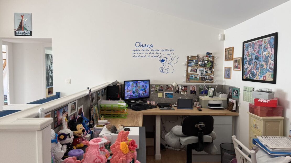 A l’étage 25m² de pallier, 3 chambres dont deux atypiques, une salle de bains et un wc indépendant.