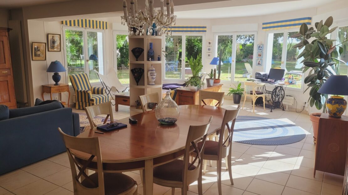 Avec ses 7 pièces, dont 4 chambres confortables, cette maison est idéale pour une famille. Elle se compose d’une entrée, cuisine aménagée et équipée, vaste séjour/salon avec cheminée, suite parentale (chambre et salle de bains avec wc), cabinet de toilette avec wc, cellier, vestiaire et dégagement permettant d’accéder au jardin.