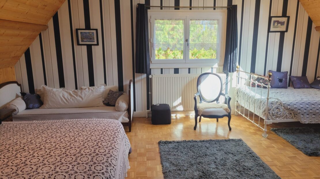 L’étage se compose d’un palier, 3 grandes chambres dont 1 avec cabinet de toilette, salle de douche avec wc et bureau.