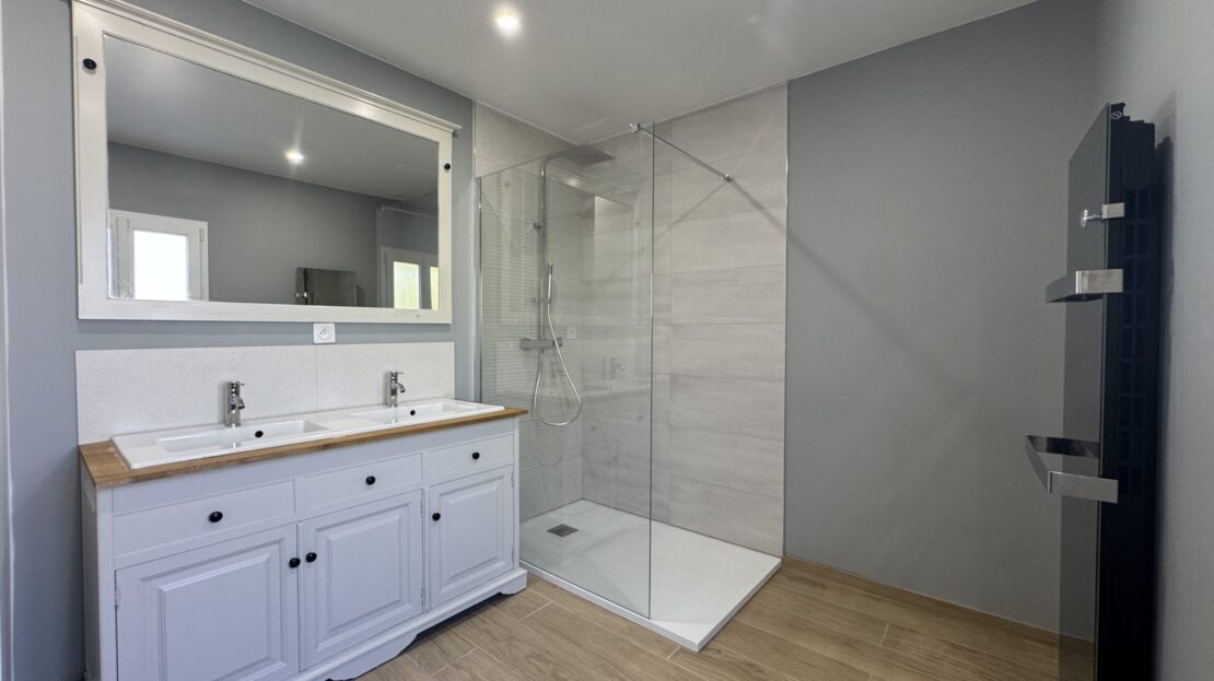 La première maison, vendue libre d’occupant et entièrement réhabilitée (de plain-pied), se décompose comme suit :