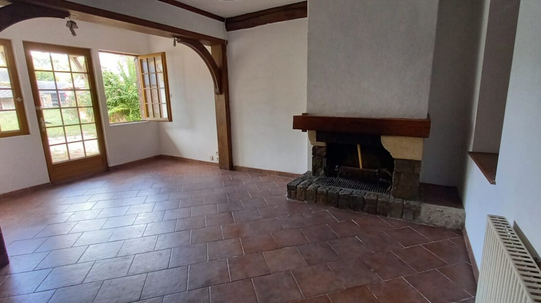 – au rez-de-chaussée: séjour/salon avec cheminée ouverte, cuisine, chaufferie avec WC