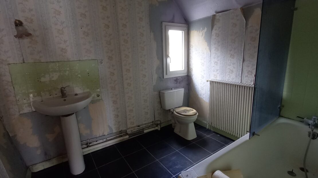 – à l’étage: un couloir desservant trois chambres spacieuses, bureau, salle de bains avec WC