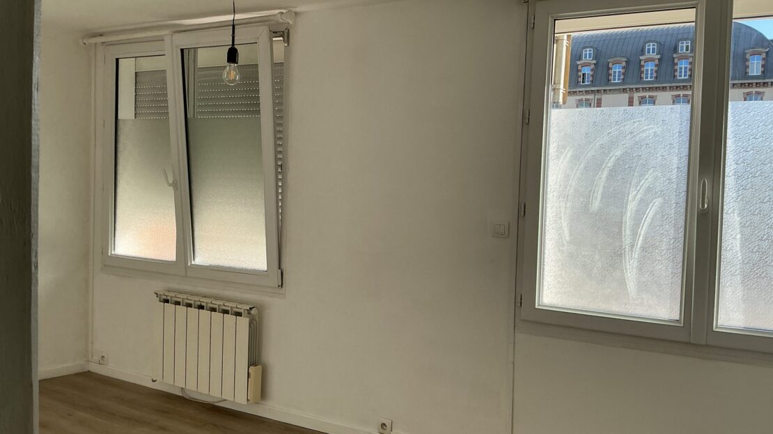 EVREUX CENTRE VILLE, proche du cinéma, studio de 20 m² en rez de chaussée avec terrasse et cour commune comprenant : entrée dans cuisine aménagée et équipée d’une plaque de cuisson vitrocéramique et d’une hotte aspirante, salle de douche avec wc, pièce principale avec des étagères. Fenêtres double vitrage avec volets roulants électrique.