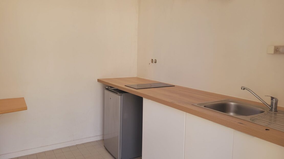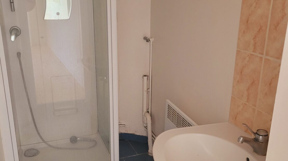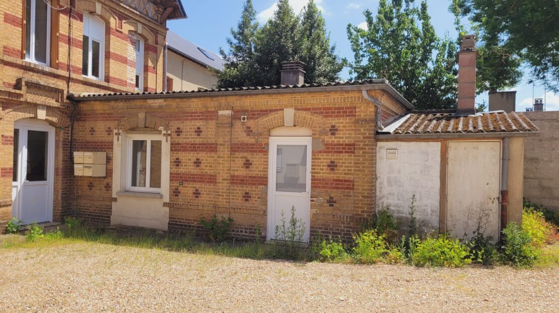 Derrière ce bâtiment et en retour d’équerre, une construction accolée audit bâtiment comprenant un simple rez-de-chaussée : Appartement de type F1 d’une surface de 23,20m² comprenant cuisine aménagée/équipée, pièce principale, salle de douche avec WC.