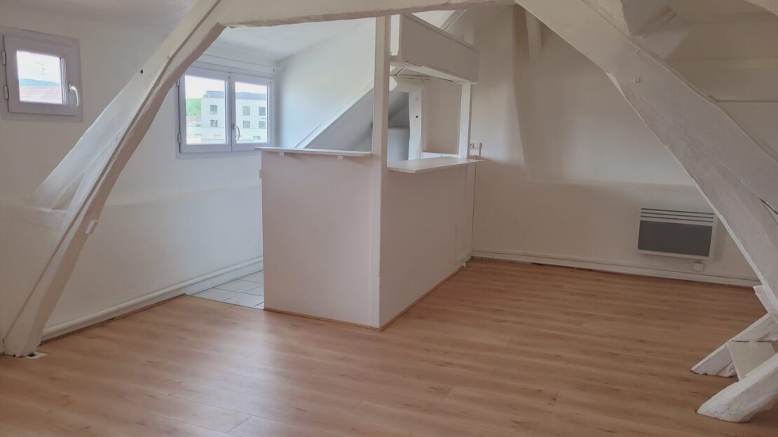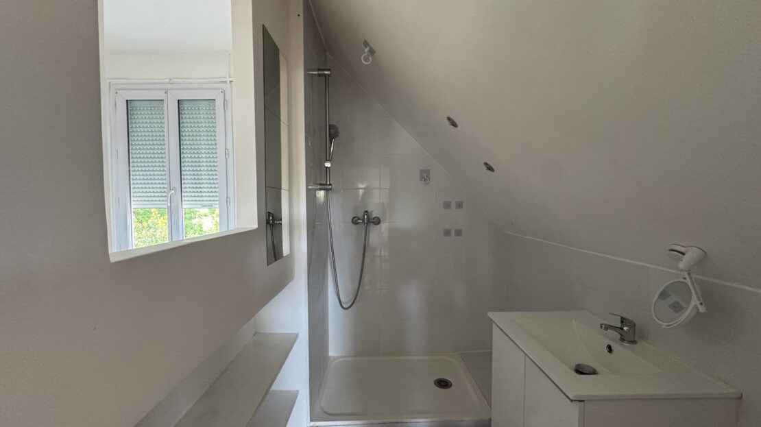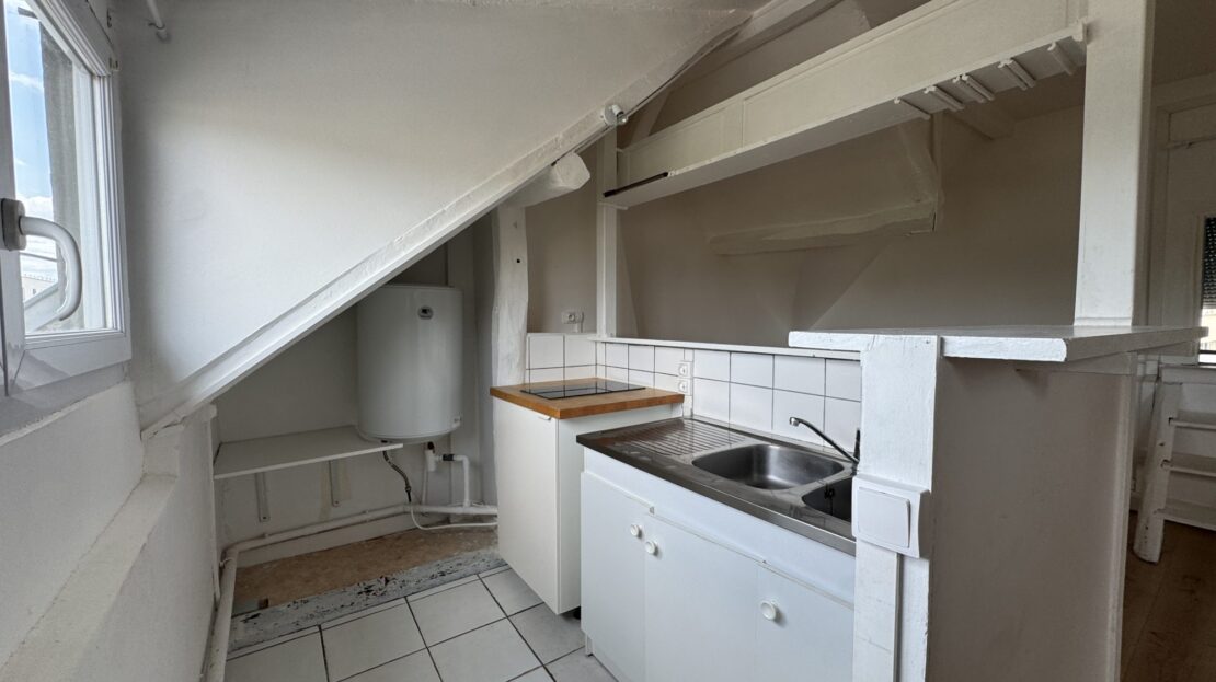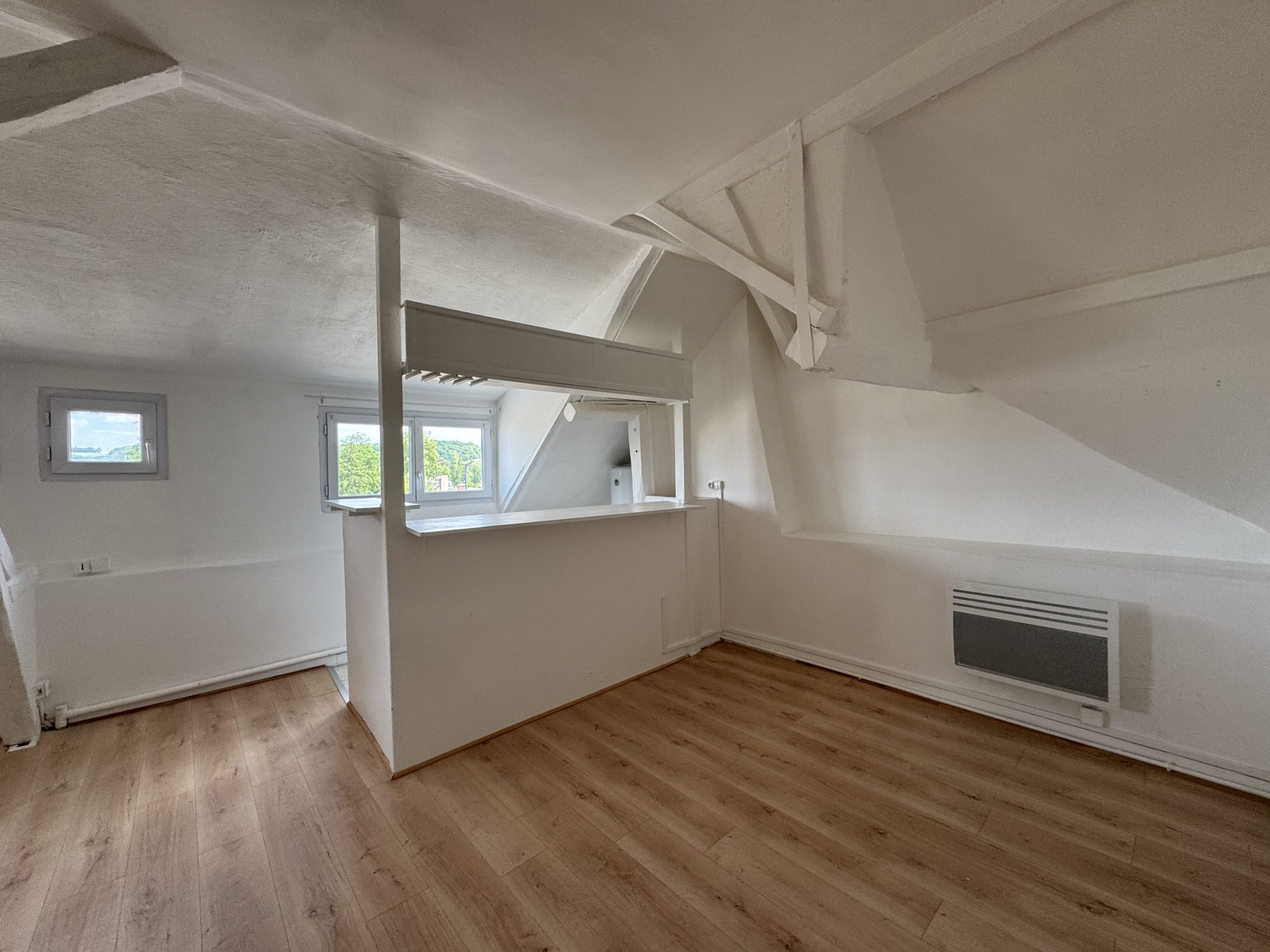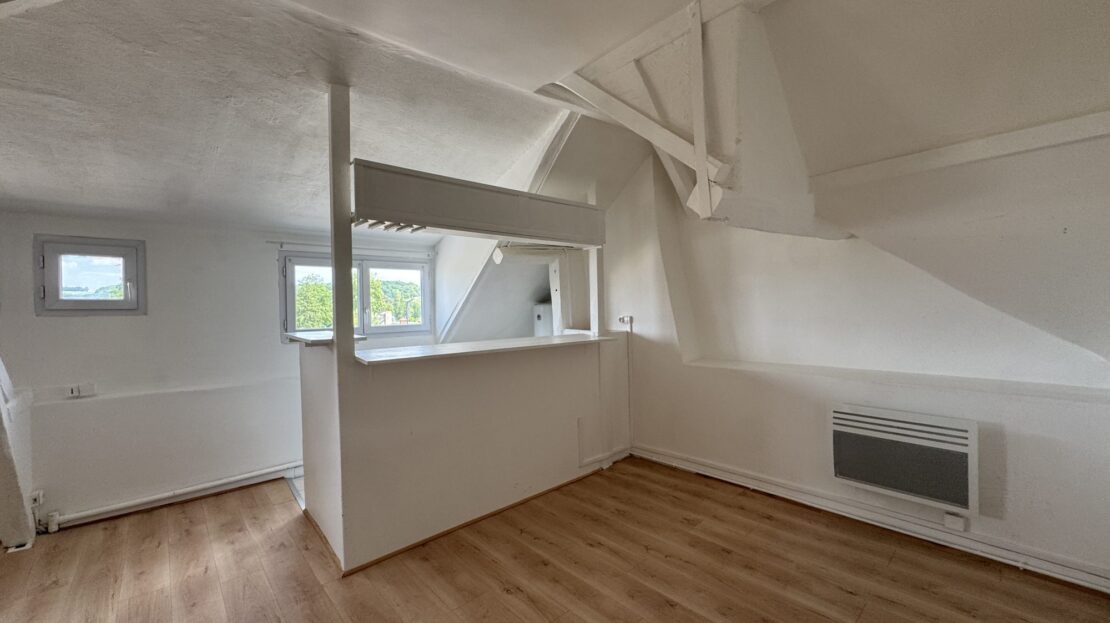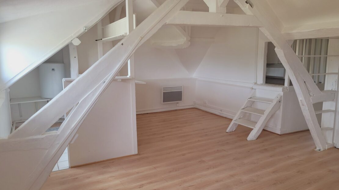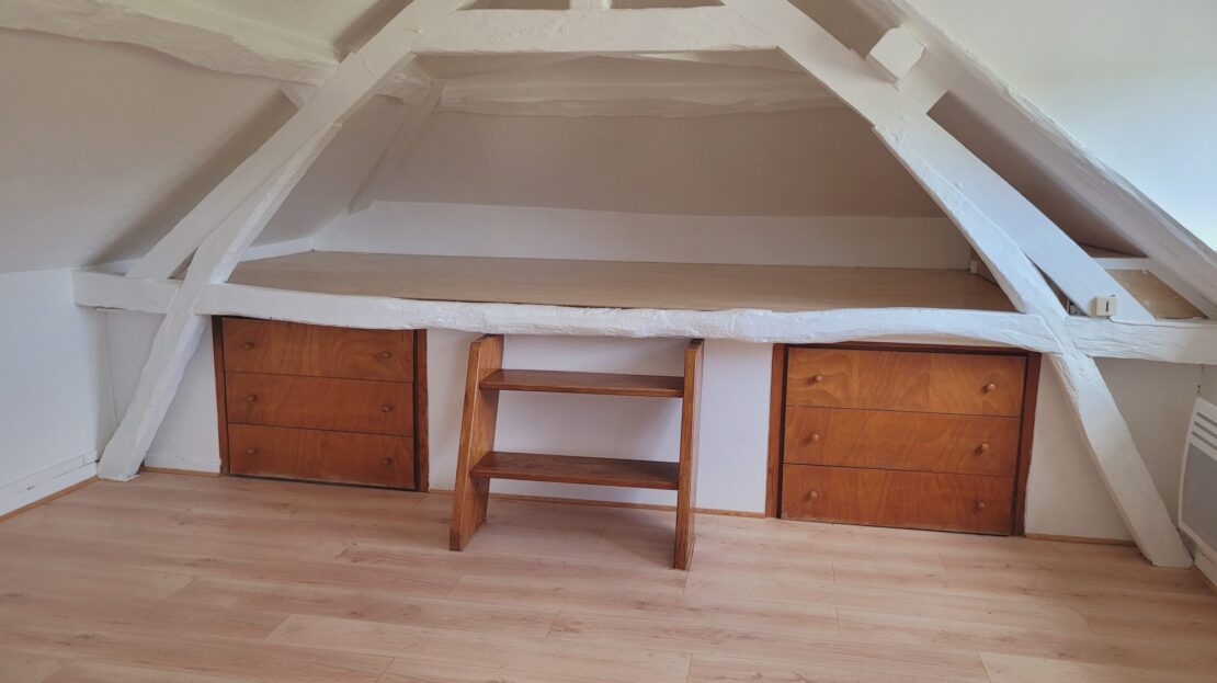 – Au deuxième étage dans les combles, un appartement de type studio d’une surface de 38m² comprenant : entrée, montée d’escalier, grande salle avec cuisine américaine, alcôve surélevée, salle de douche avec WC, et une salle de bains.