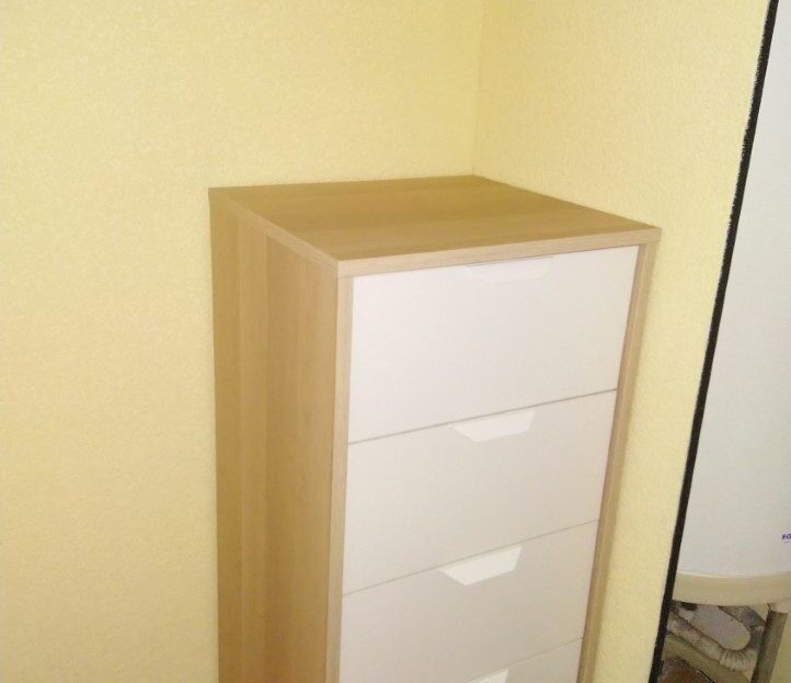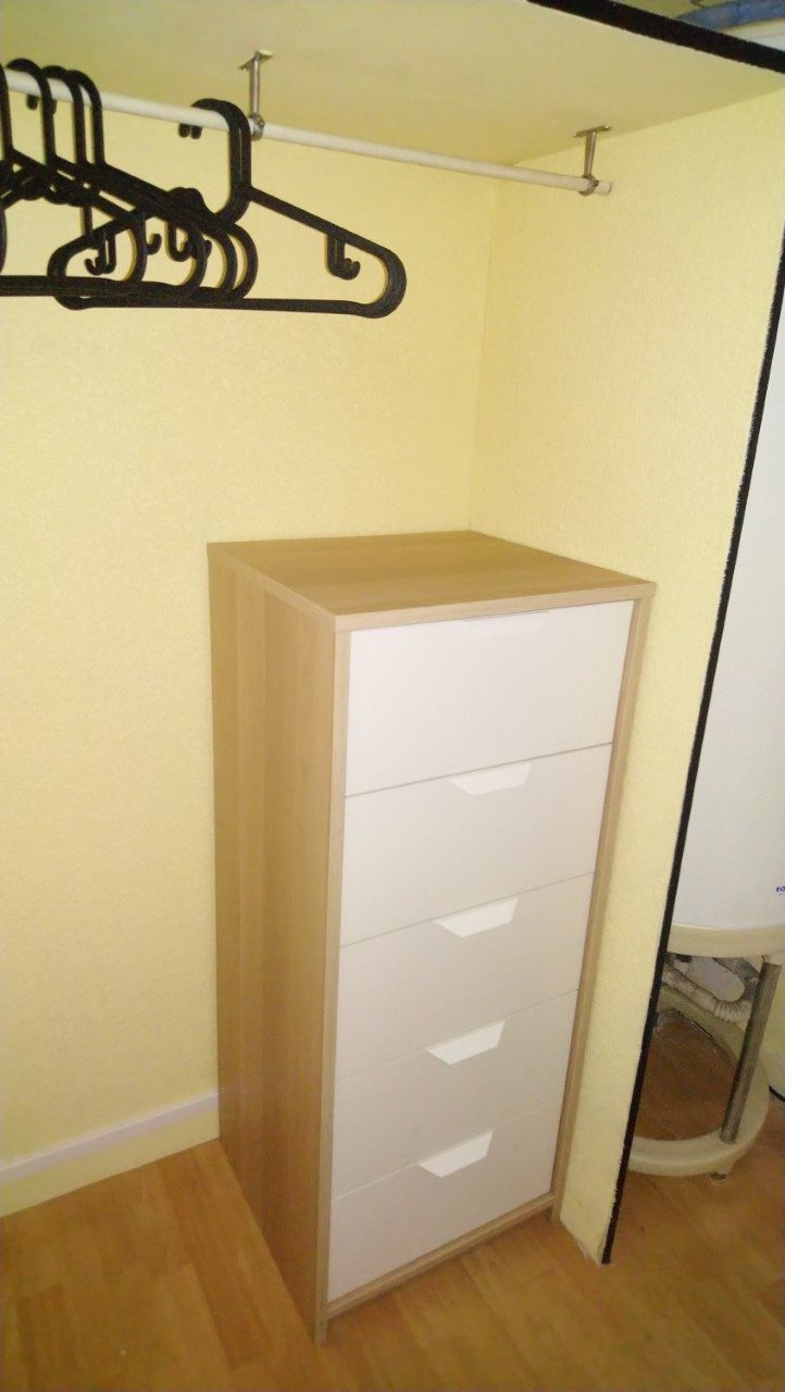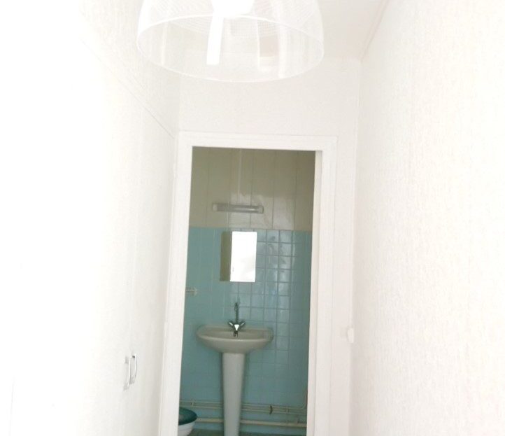 entrée avec placards, salle de douche avec wc, une belle pièce de vie et une cuisine aménagée et équipée.