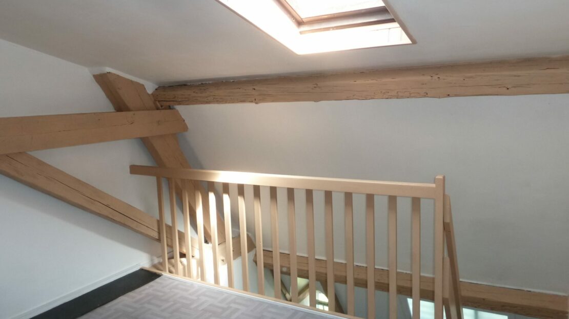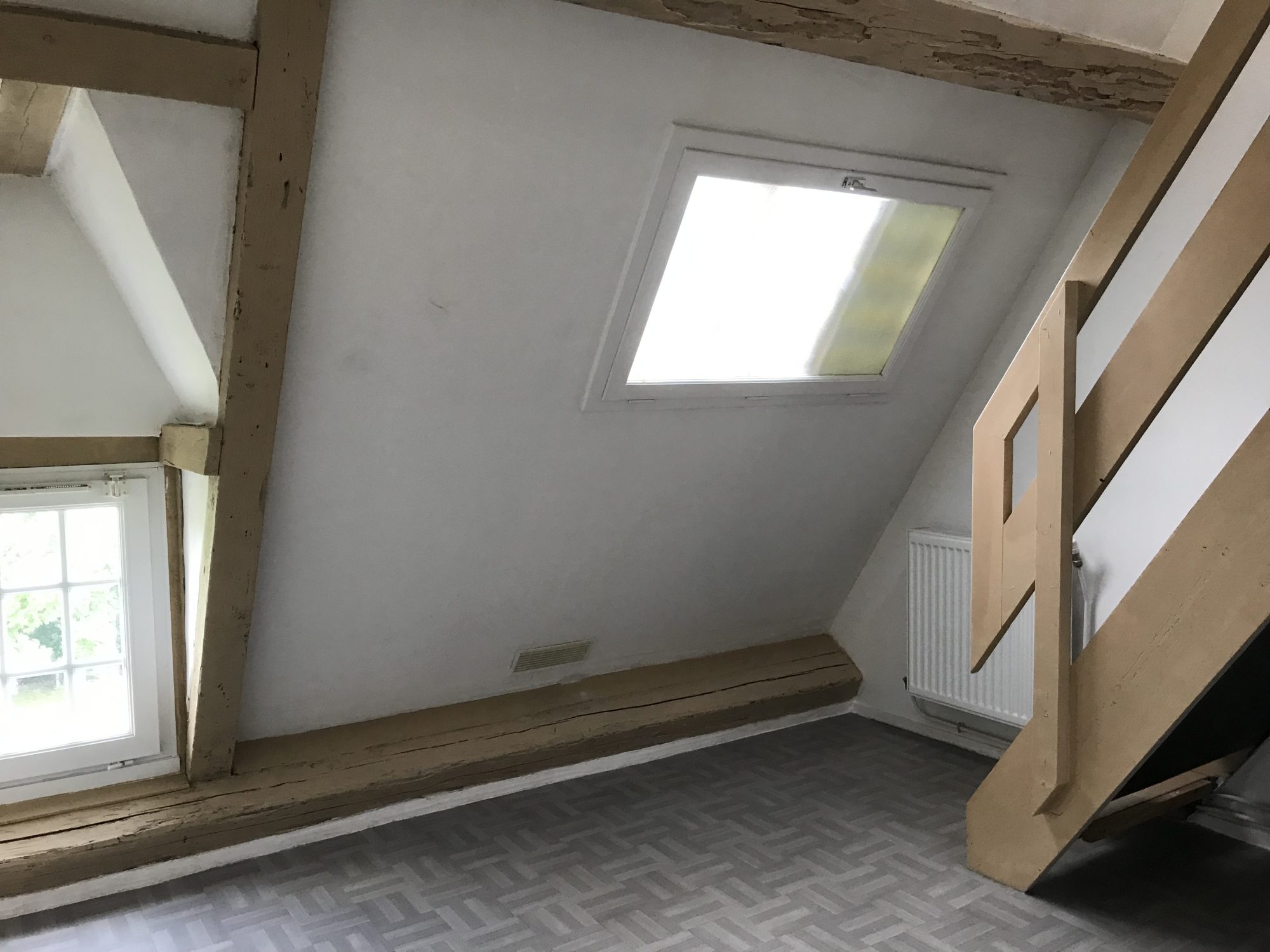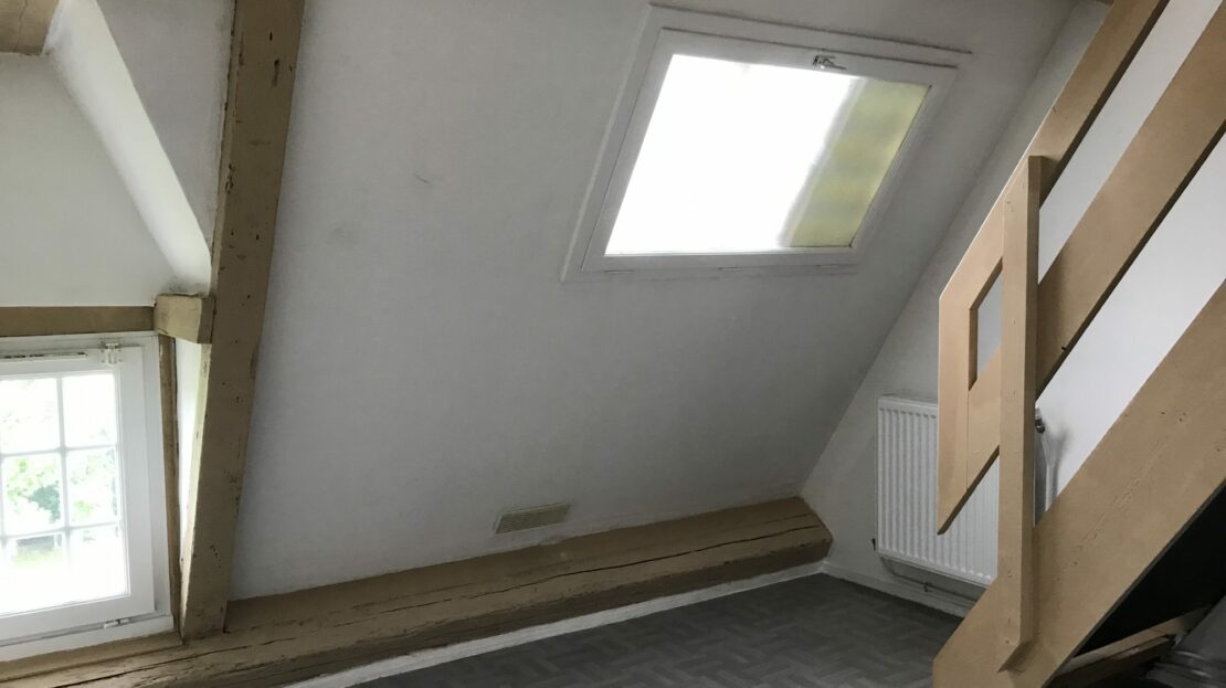 à l’étage : espace chambre, salle de bains avec wc