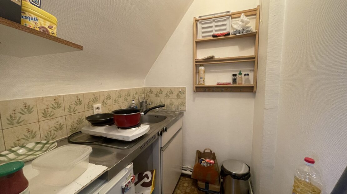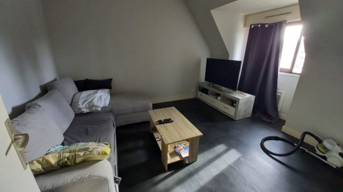 LOUVIERS, studio de 19 m² : entrée, cuisine séjour, salle de douche avec douche neuve.
