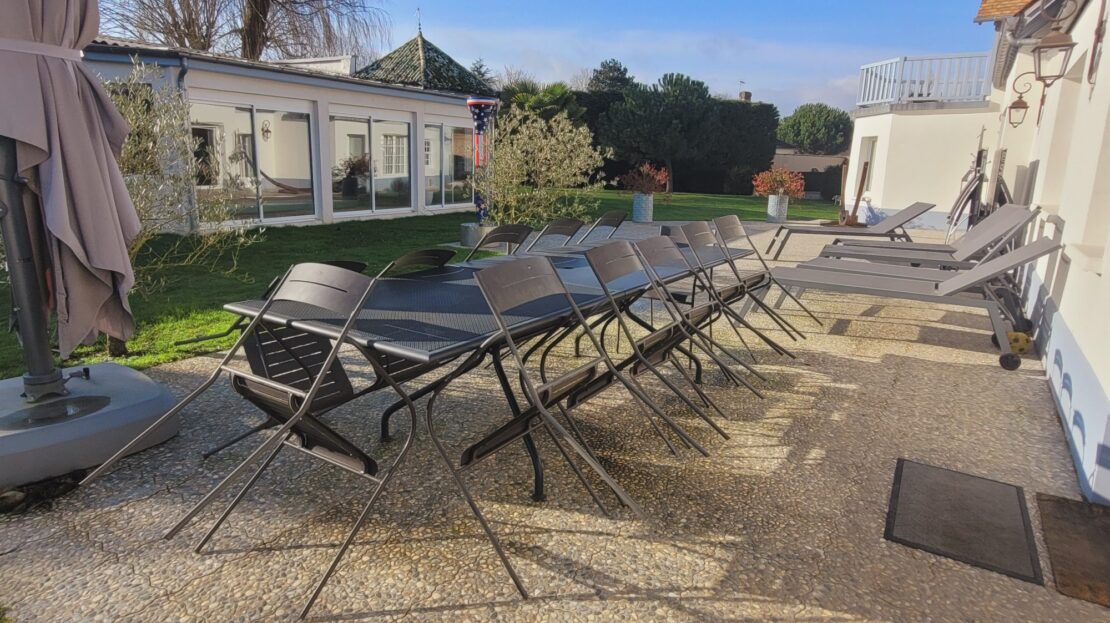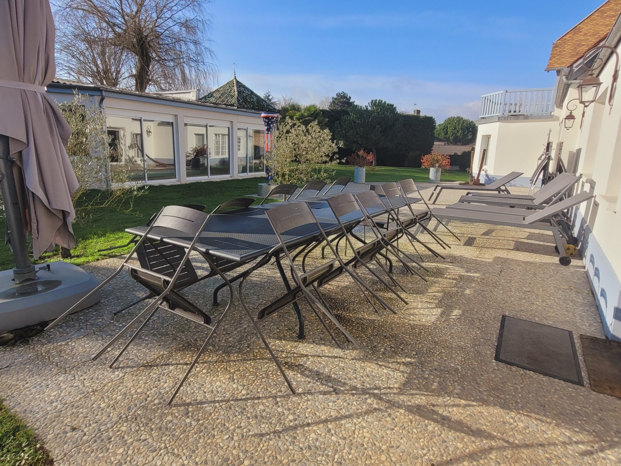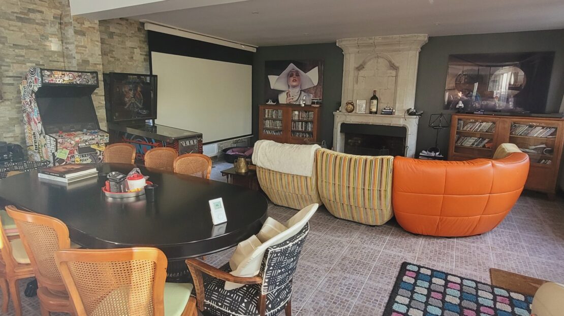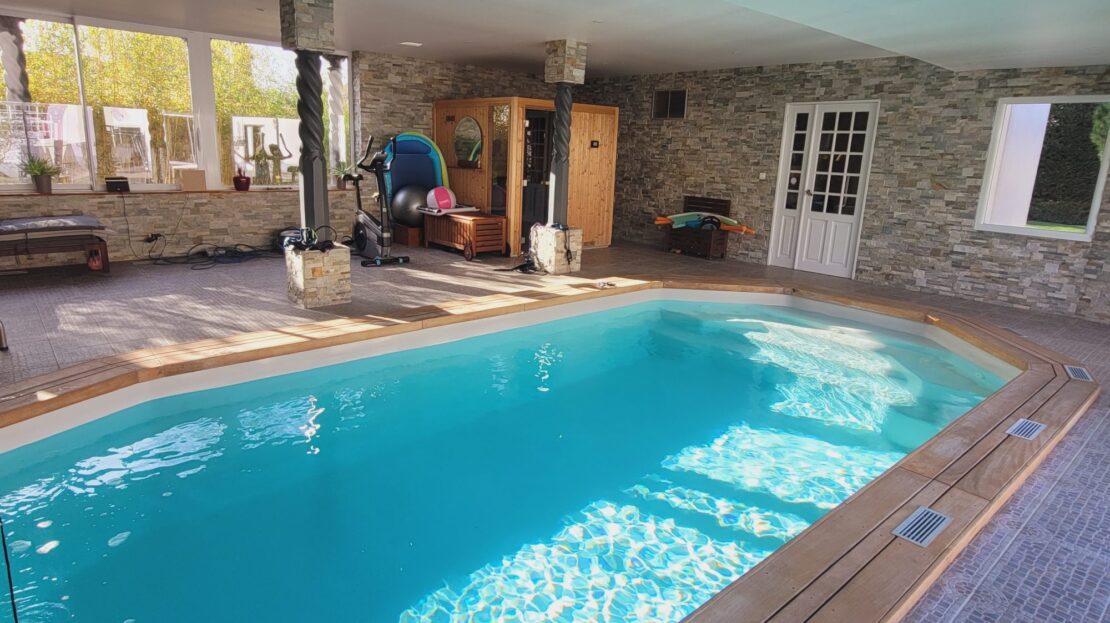 La dépendance, lieu de repos et de convivialité de 135 m²dans laquelle vous trouverez une piscine chauffée, un saune, une salle de douche avecwc et une sale de réeption ou de jeux de 45 m² équipée d’une cheminée.