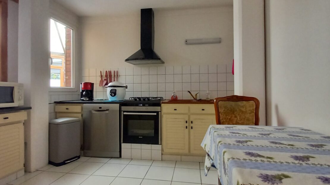 – au rez-de-chaussée; entrée avec placard, séjour/salon avec cheminée insert, cuisine, buanderie, WC, couloir desservant chambre, dressing et salle de douche, véranda