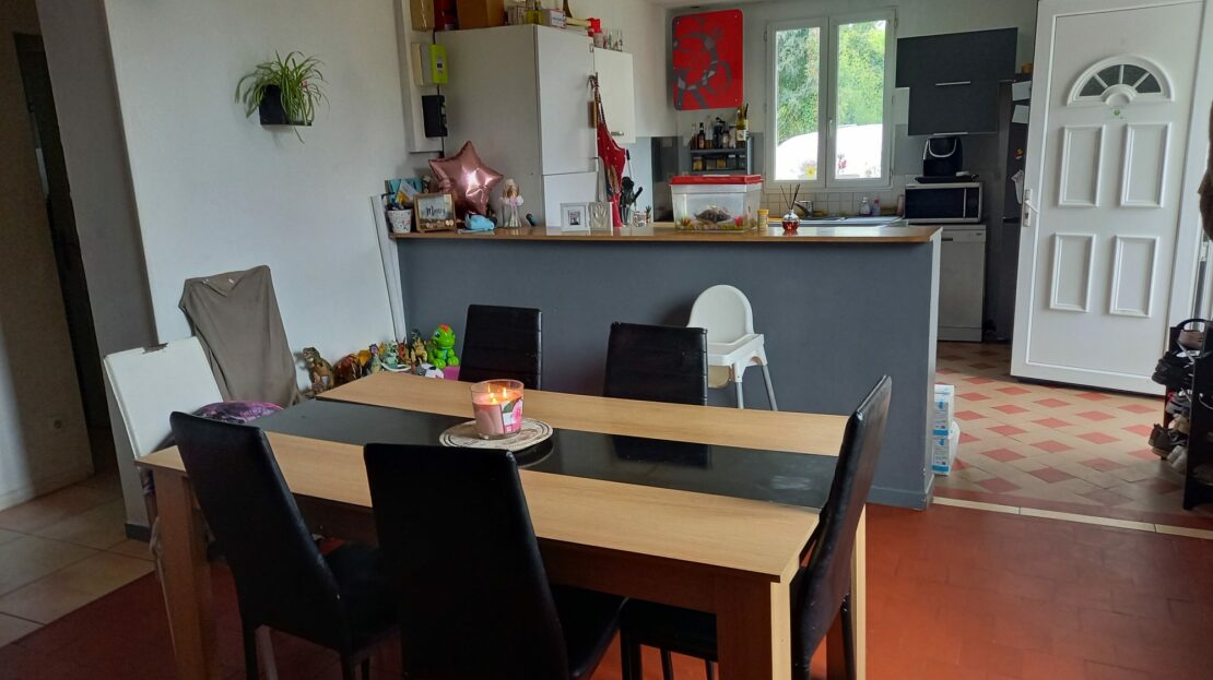 – au rez-de-chaussée: séjour/salon ouverte sur la cuisine aménagée, chambre, salle de bains avec WC, chambre traversante pour accéder au premier étage
