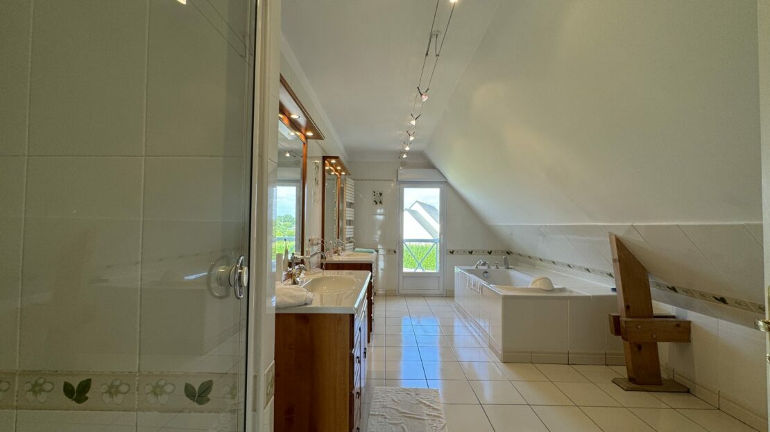 Le jardin de 3000 m², véritable écrin de verdure, vous invite à la détente et aux jeux en plein air. De plus, vous bénéficierez de 2 garages et de nombreux parking extérieures.