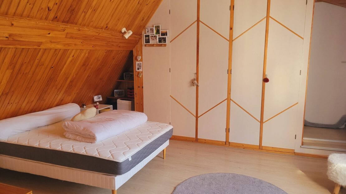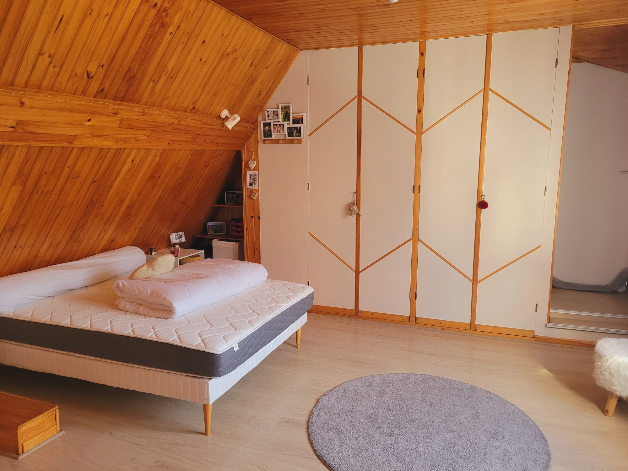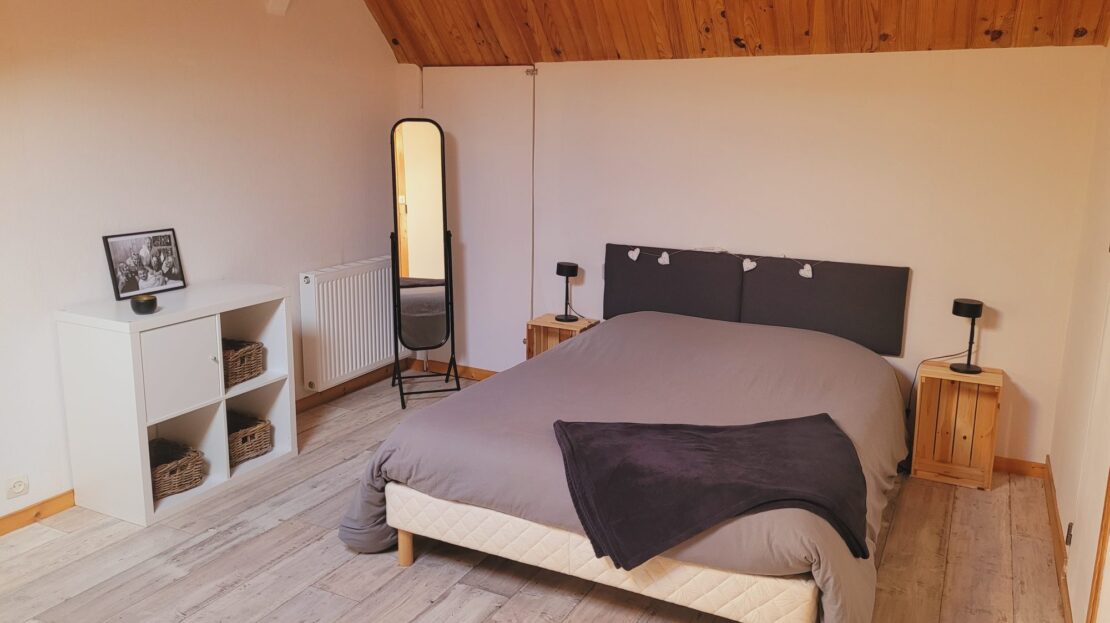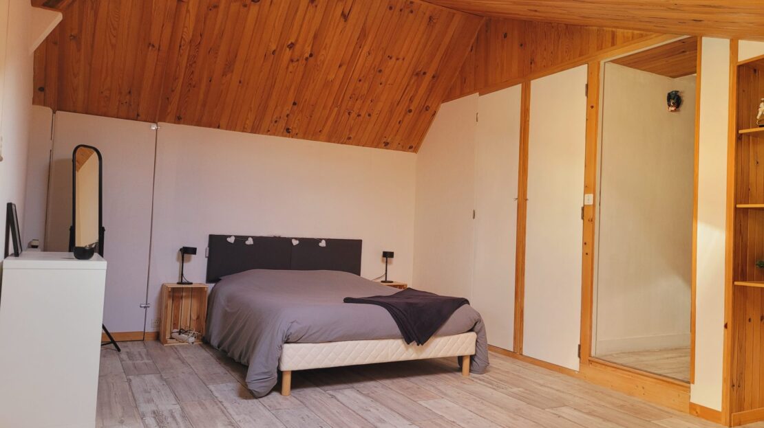 L’étage est accessible par 2 escaliers : le premier desservant une chambre et une pièce pouvant être aménagée en future salle de bains (arrivées et évacuations d’eau déjà présentes), Le second escalier dessert 4 autres chambres (dont 2 en enfilade), une salle d’eau et un wc.