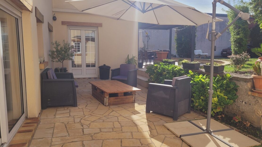 Le jardin, joliment paysagé et sans vis à vis offre deux grandes terrasses dont une équipée d’une pergola. Une dépendance à usage d’atelier/garage vous permettra de bricoler ou de stocker. Vous pourrez facilement stationner vos véhicules dans la cour.