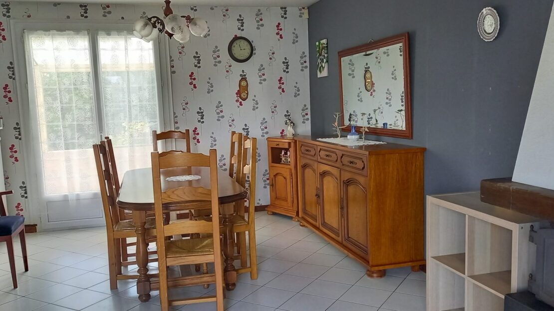 – au rez-de-chaussée: entrée avec placard, séjour/salon avec cheminée insert, cuisine, salle de couche avec WC
