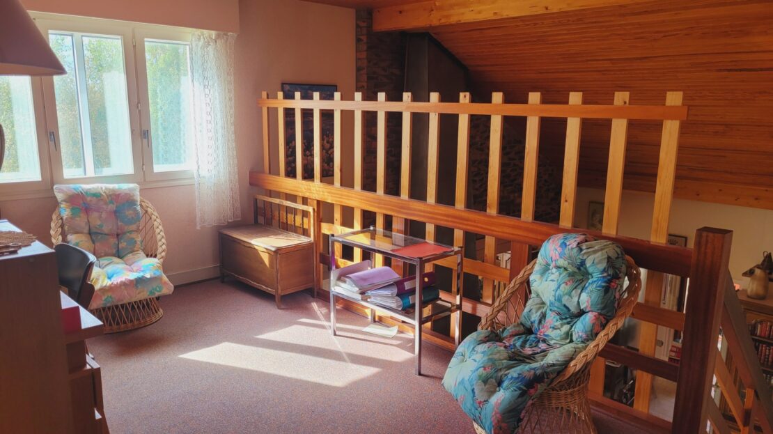 L’étage se compose d’une grande mezzanine ouverte sur le salon, 3 chambres et un grenier.