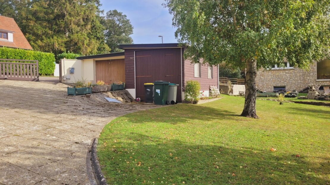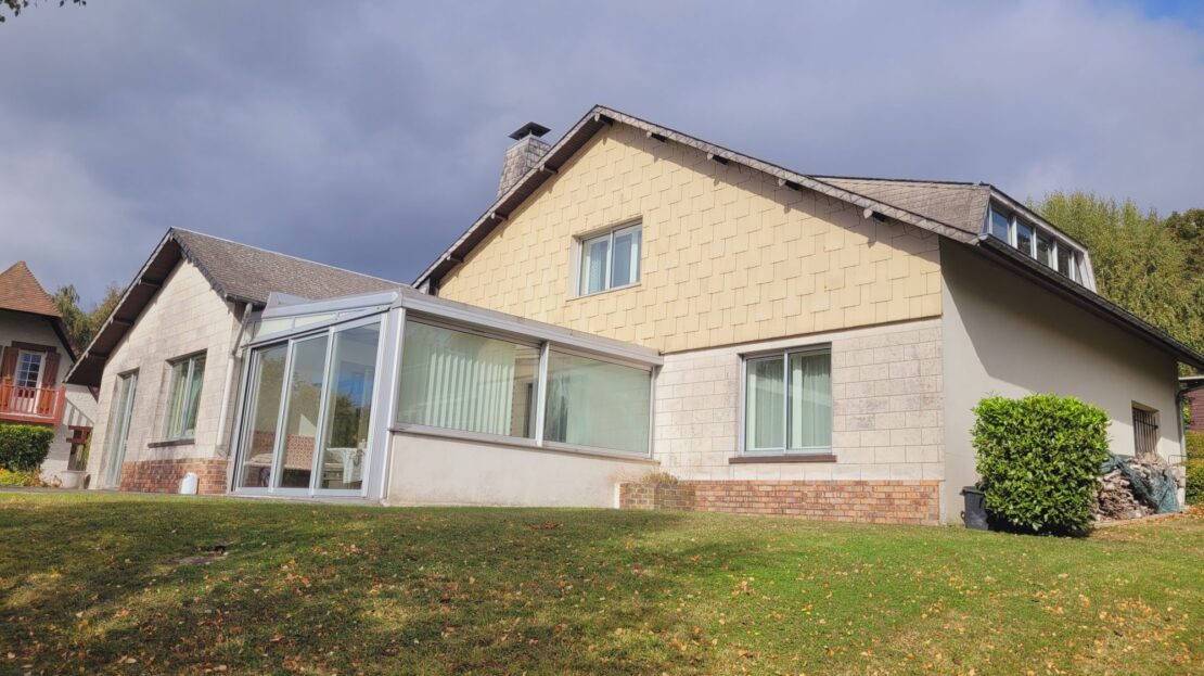 La maison dispose d’une grande terrasse et d’un terrain de plus de 5 000 m² avec une vue imprenable sur Louviers et la vallée d’Eure.